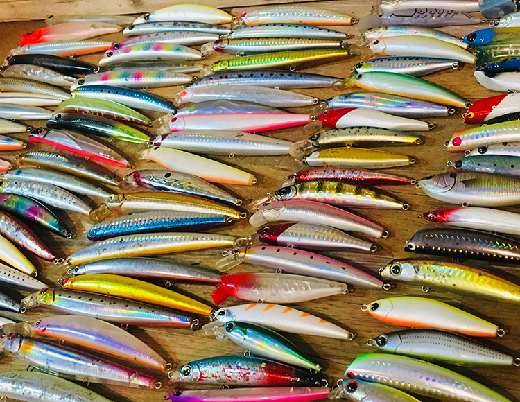 アイマ、K-ten、RAPALA、メガバスなど一流メーカーのミノーがずらり笑