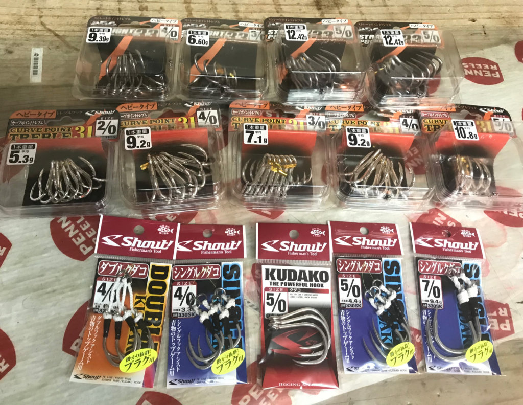 本日は品切れ、品薄になっていた『トレブルフックやアシストフック』など合計12点の新品商品が追加入荷いたしました!!