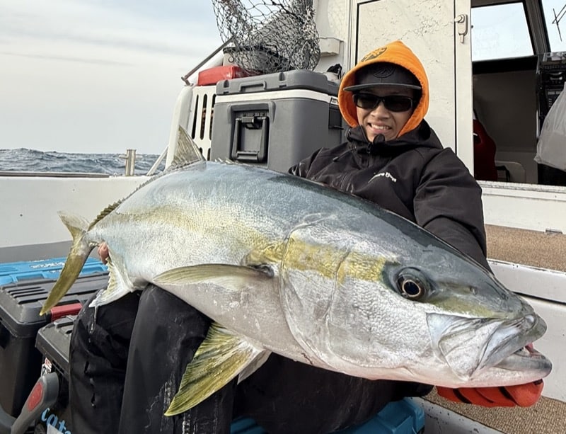 浮上したのはこの日、私のベストとなる14.5kgの春らしい幅のあるヒラマサでした!