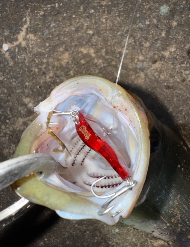 半信半疑でルアーを小型バイブレーション「ブルーブルー ナレージ」に交換。