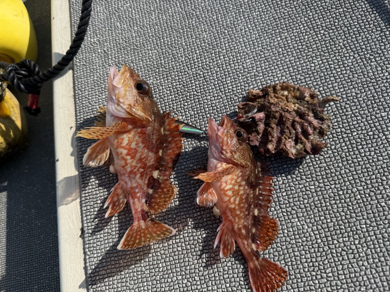 まさかのカサゴの2匹掛け+貝殻。。(笑)