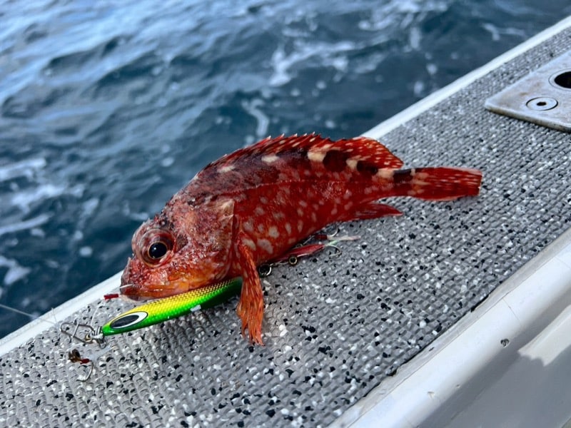 同船の方々と小型ルアーが効くかもという話になり、大型ルアーではなく小型ルアーを使うことにしました。