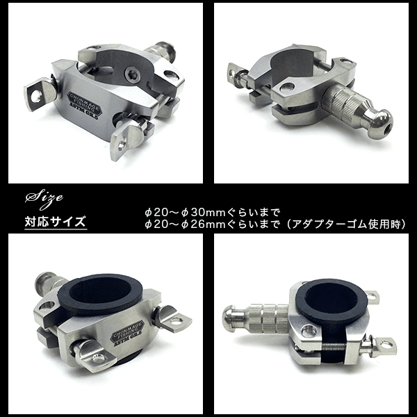 竿直径φ20~φ26mmぐらいまで(アダプターゴム使用時)