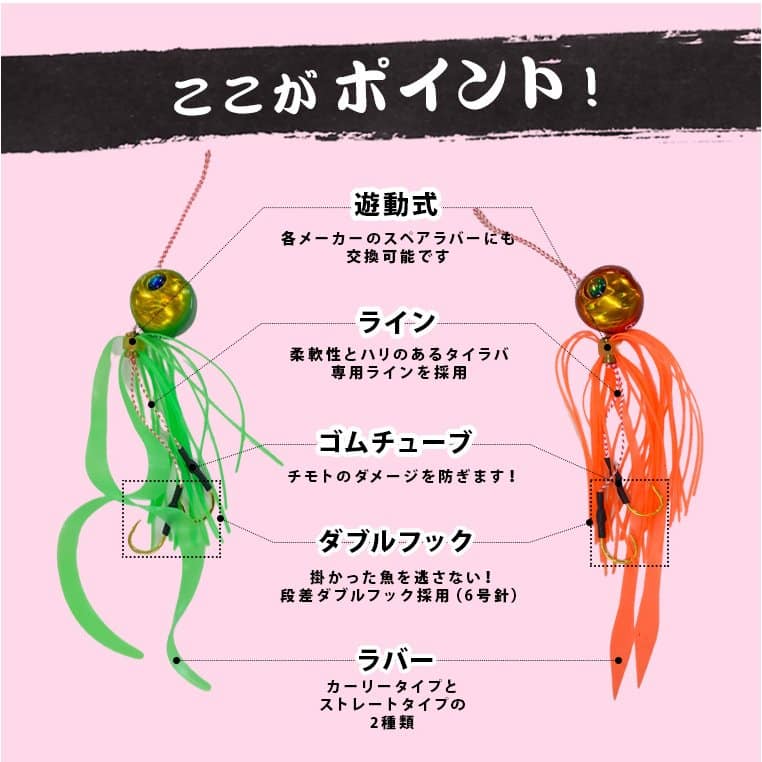 スルスルチューブを採用することで、遊動式タイラバのデメリットでもあったメインラインのスレを大幅に激減。
