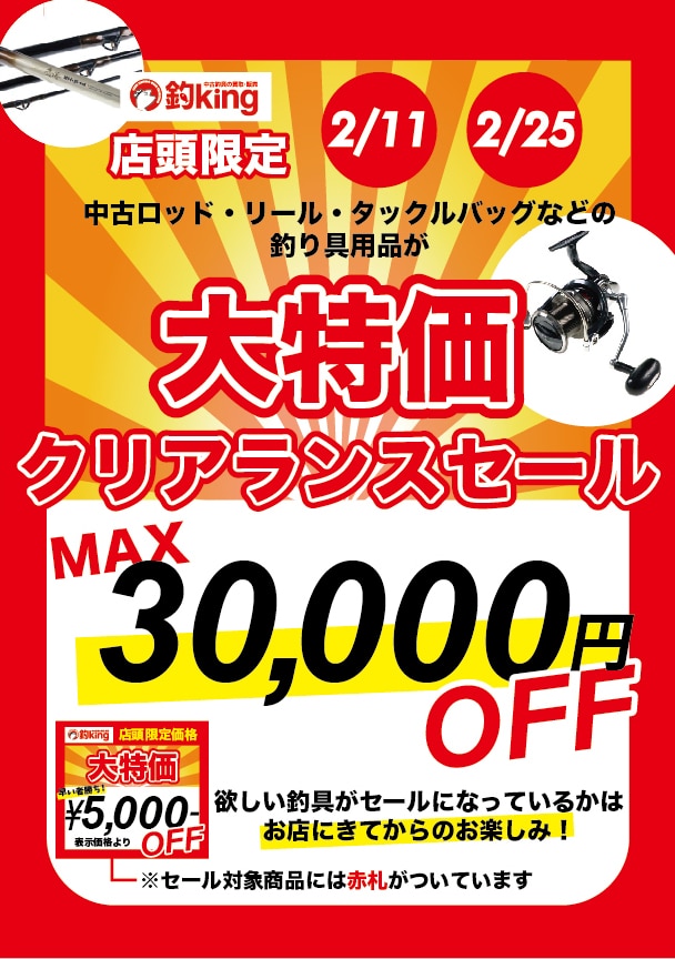 突然ですが2月11日と25日土曜日に、店舗限定大特価クリアランスセールを開催致します!